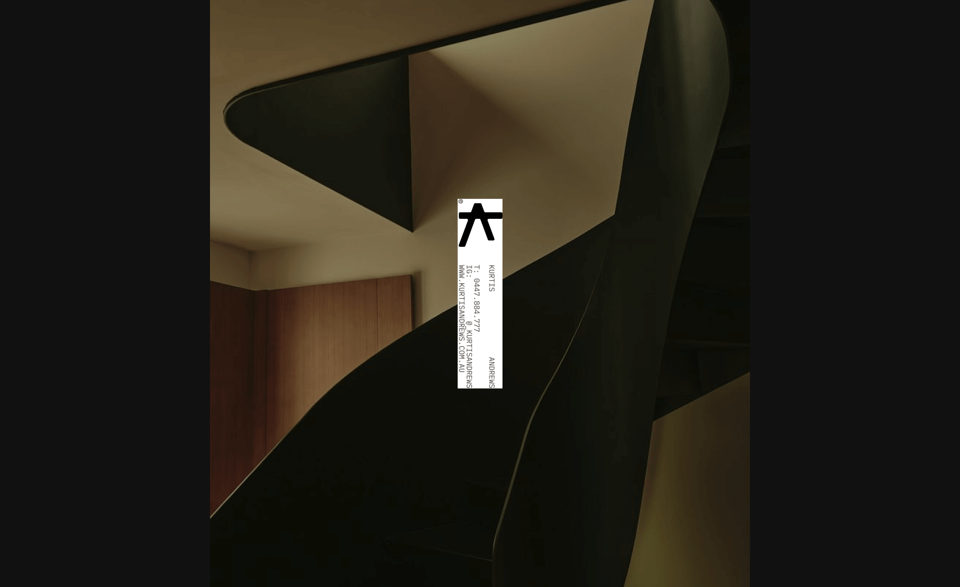Kurtis Andrews is an architectural designer based in Western Australia. The brief was to create a bold identity that stood apart from conventional architecture branding. The result is a complete brand system built around a custom mark, a considered type system, and a material colour palette rooted in the built environment.